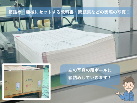 ダンボールの中に教科書をいれていくだけの単純業務!!