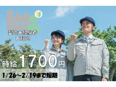 1/26~2/19までの短期\短期間でガッツリ稼ごう♪時給1,700円で未経験者大歓迎☆/製造現場での軽作業
