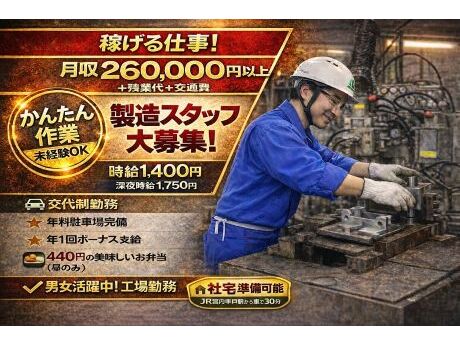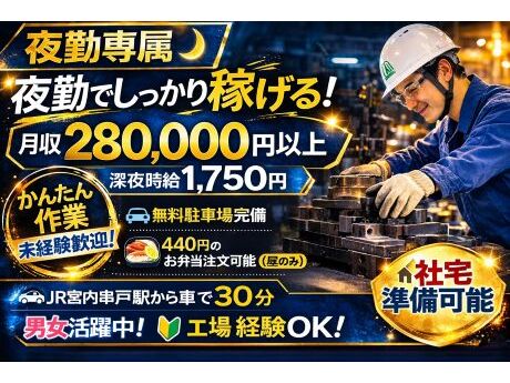 常夜勤で高月収!\20代~50代幅広い年齢層が活躍できる♪業界未経験者大歓迎◎/部品セット・検査スタッフ