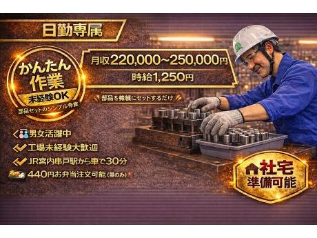 製造業で常日勤!\20代~50代幅広い年齢層が活躍できる♪業界未経験者大歓迎◎/部品セット・検査スタッフ