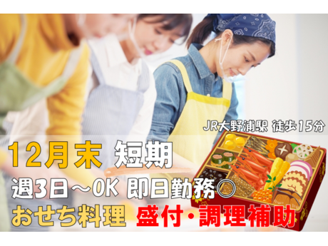 ”NEW”女性人気案件登場\12月末までの短期ワーク!週3日~OK♪未経験歓迎/おせち料理の盛付・調理補助スタッフ