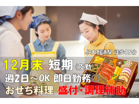 ”NEW”年末までの短期求人!\即日勤務可能!高時給1,500円の人気の夜勤♪4~7Hで勤務可能/おせち料理の盛付・調理補助スタッフ